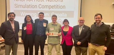 Joshua Squires, first-year public affairs graduate student, recently competed in a regional 2024 Simulation Competition sponsored by Network of Schools of Public Policy, Affairs, and Administration (NASPAA) and was on the winning team. The competition offers public affairs students nationwide the opportunity to apply theory from coursework to simulated real-world situations, including international ones. Winners of the 13 regional competitions will be considered for the global competition prize.